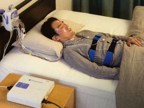 夜間の鼾と無呼吸発作により、質の高い睡眠が取れず、昼間の眠気の強い方に行う検査です。簡易検査に加えて、当院に一泊して頂く精密検査(PSG)も実施しております。入院費は頂きませんので、検査料金は12000円弱と格安です。