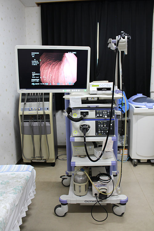 ファイバースコープ(デジタルカメラ)による、上・下部消化管の診断、日帰り大腸ポリープ切除を行います。胃カメラは経口の他、鼻からも挿入可能な極細径のものもあります。又鎮静剤等でリラックスして頂いた上で実施することもできます。大腸カメラは拡大内視鏡で病変の詳細観察も可能です。