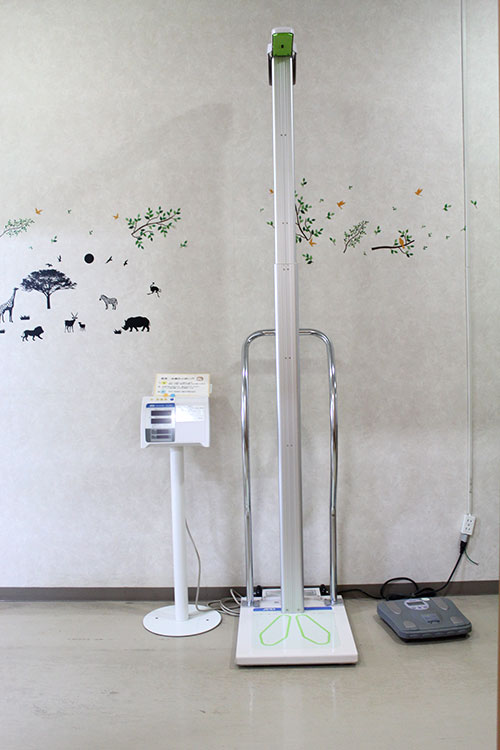 台に乗るだけで、瞬時に身長と体重が同時測定できます。